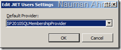 In the “Edit .NET Users Settings”, change the default provider to “SP2010SQLMembershipProvider”.